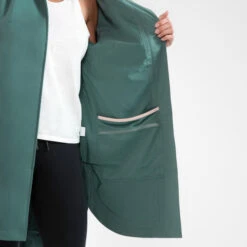 Our team has eco-designed this long waterproof jacket for your regular hikes in the rain, in the forest or on the coast.This jacket with its light lining, waterproof and breathable, protects you down to your knees. Discover its 2 pockets hidden in hand pockets! And its inside pocket to store it.
